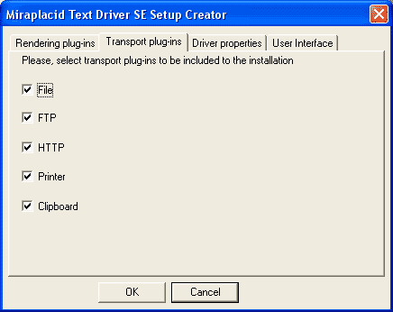 This page allows you to select transport plug-ins to be included into installer DLL component.